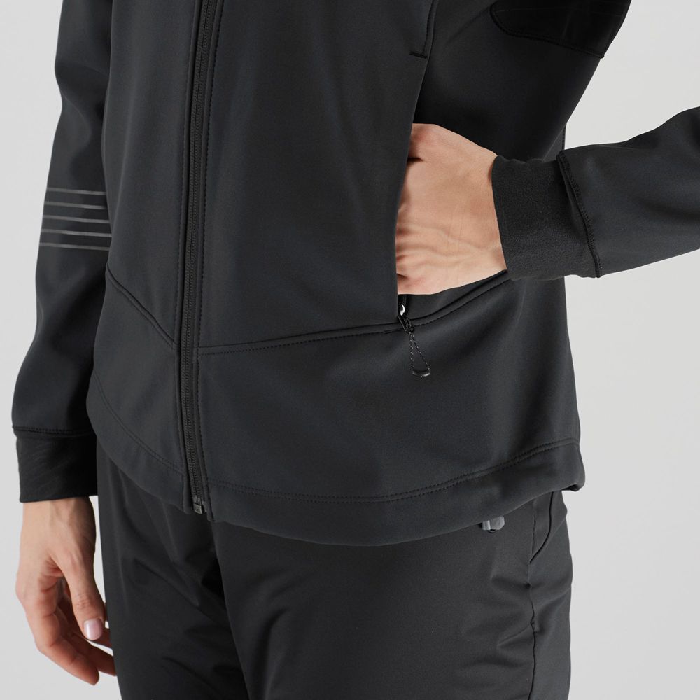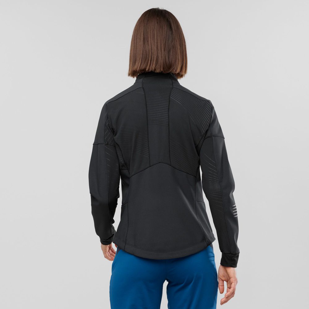 The sleekly technical women’s LIGHTNING WARM SOFTSHELL JACKET blocks wind and cold but is still highly breathable. It allows you to ski hard on cold days without restricting your movement. You’ll glide father and faster more comfortably.