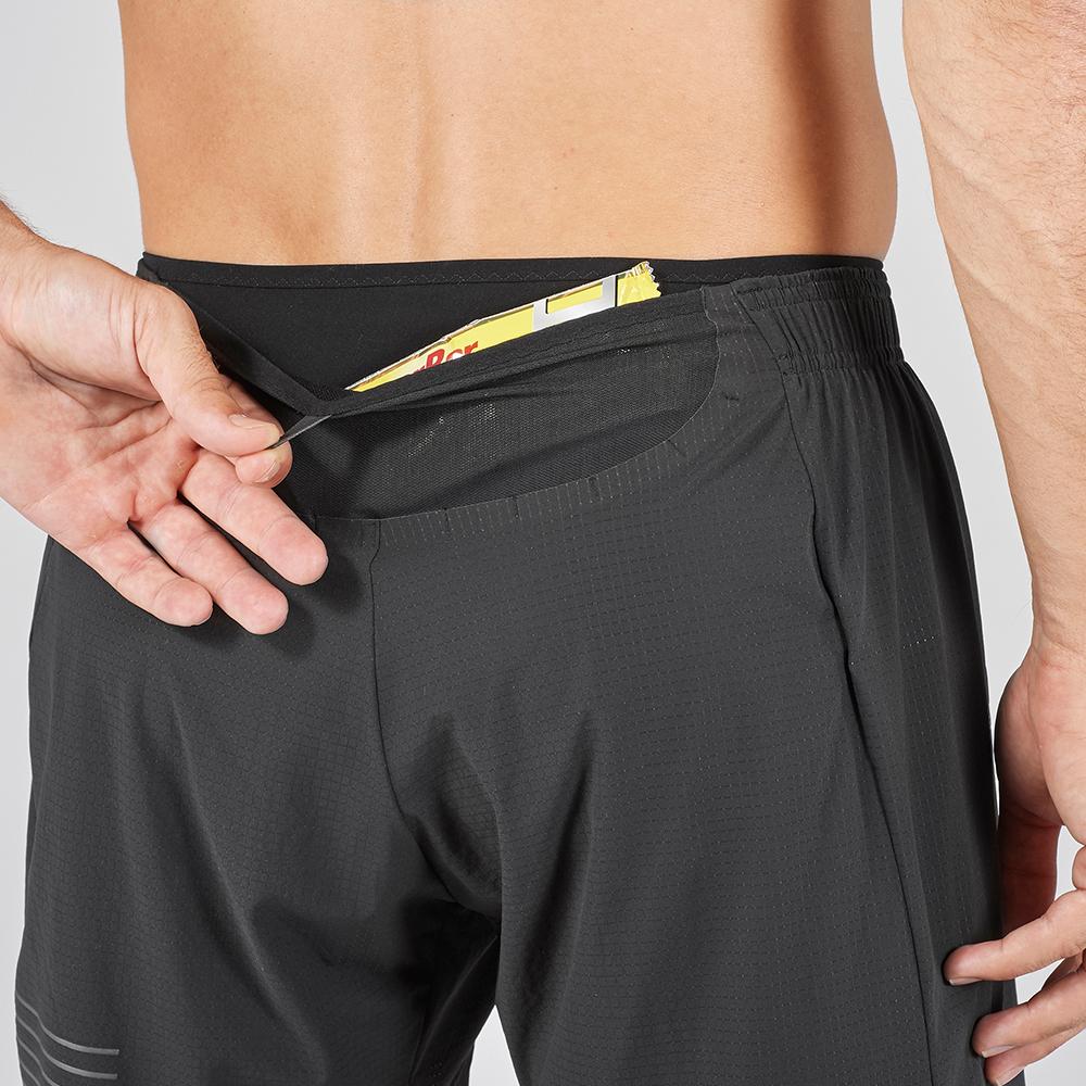The SENSE PRO-SHORT is a minimal racing short for demanding conditions. It is super portable and light, with a front, back and side pocket to stow gels, energy, and hydration – even a light jacket for big climbs and altitude gains. Born from Salomon’s cutting edge technology, this short help you at the front of the pack.