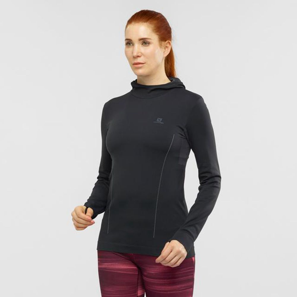 Salomon Mellemlag Dame Mørke - AGILE MID HOODIE W SEAMLESS (FHIZQ-7362)