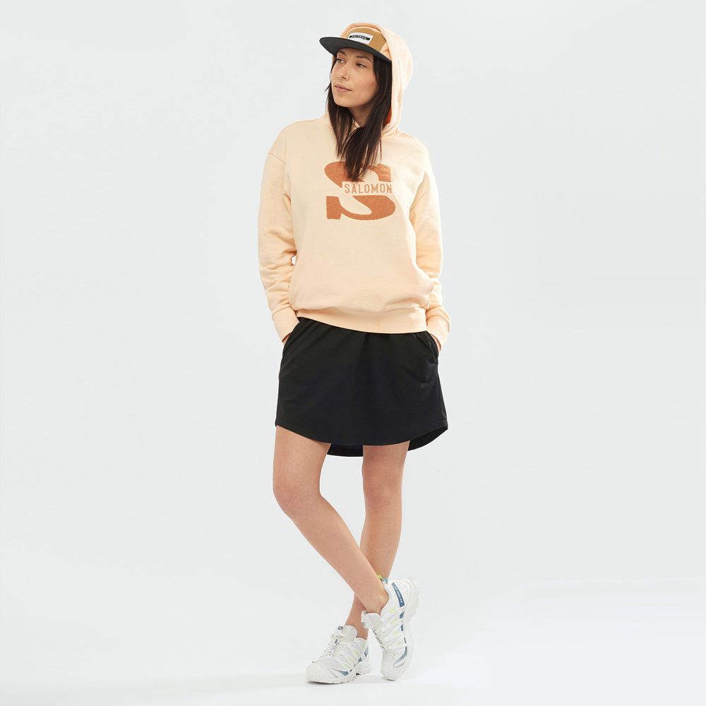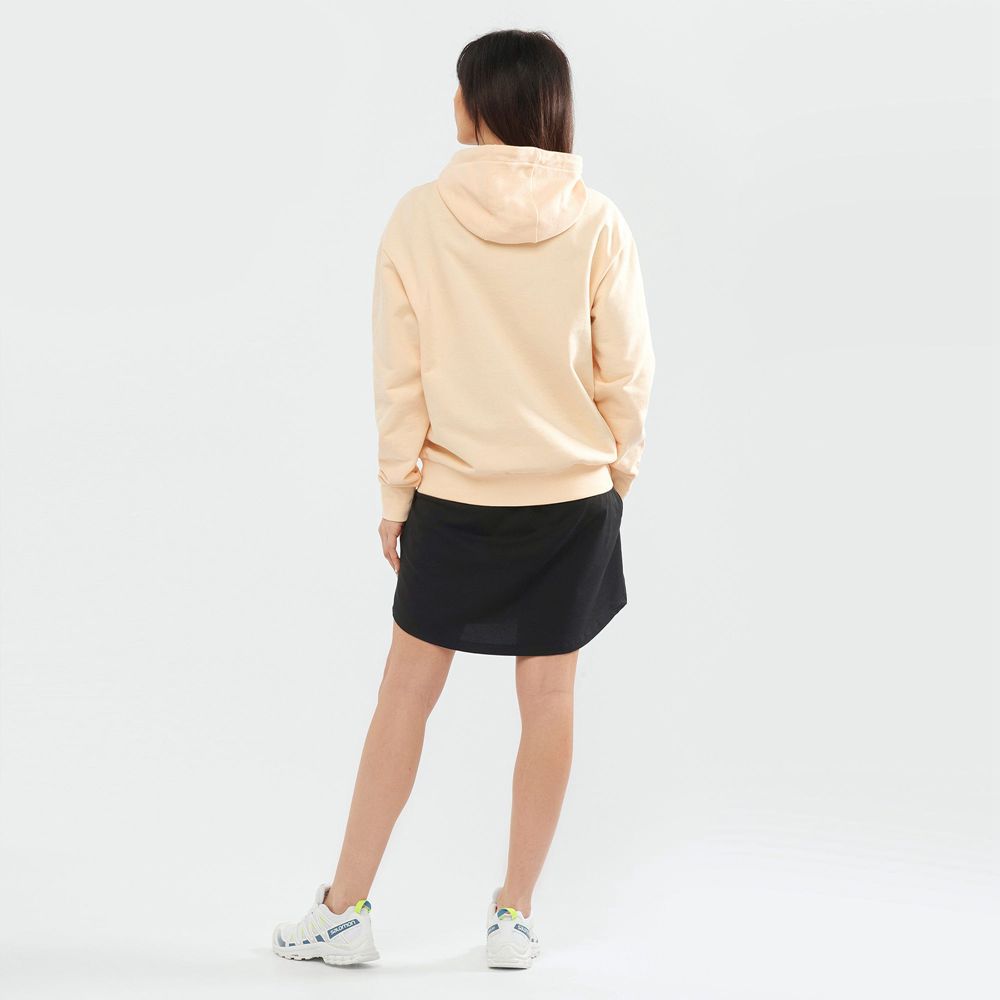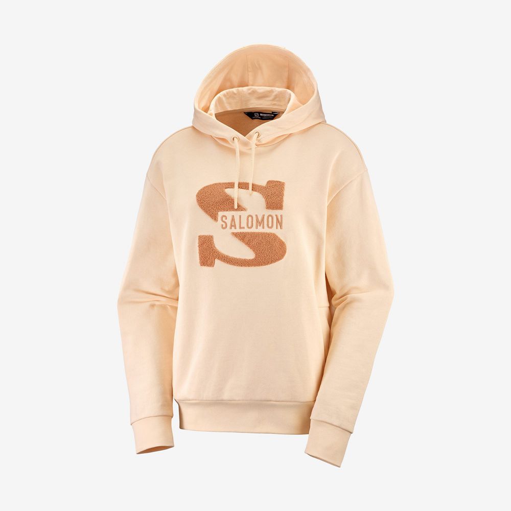 The hoody is a casual wardrobe essential. For a vintage twist, we added the old Salomon logo. To make it really comfy, we chose soft organic cotton. And for subtle elegance, we included understated details like dropped shoulders and a rib insert at the hood opening.