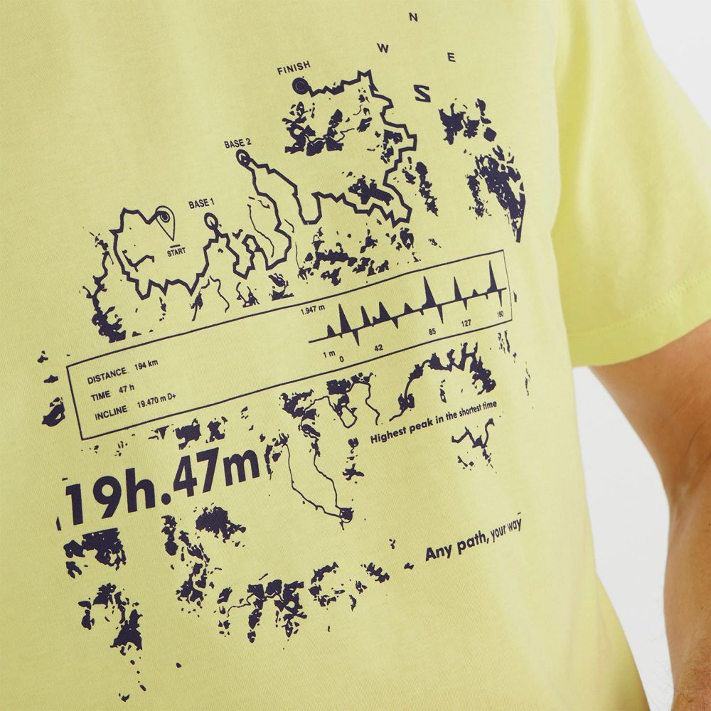 Celebrating our trail-running origins, the monochrome graphics depict the route and topographic lines of a trail Kilian Jornet ran in Norway...with Salomon-inspired performance statistics (1947 is the year we were founded). Made from soft organic cotton, it also pays tribute to the great outdoors as a limitless playground through inspirational texts like “Any path, your pace.”